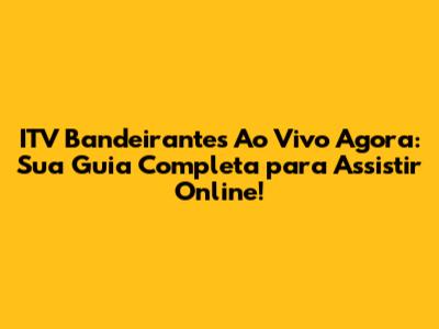 Você pode assistir a ITV Bandeirantes ao vivo online no site oficial da emissora, em aplicativos de TV, plataformas de streaming e, ocasionalmente, em redes sociais e canais no YouTube.