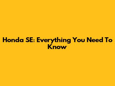 Honda SE: Everything You Need To Know
