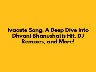 Hey music lovers, have you grooved to the enchanting melodies of Ivaaste by the incredibly talented Dhvani Bhanushali? If not, you're seriously missing out! This song has taken the music world by storm, and for good reason. But that's not all – we're diving deep into the world of Ivaaste DJ remixes, the various versions available, and what makes this song so special. So, grab your headphones, get comfy, and let's unravel everything about this musical gem!