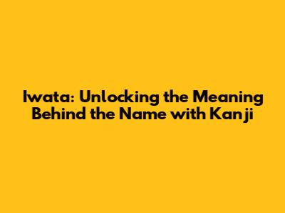 Hey guys! Ever wondered about the hidden meanings behind Japanese names? Today, we're diving deep into the name "Iwata" (岩田) and exploring the fascinating world of kanji. Get ready to unlock some cool cultural insights! Understanding the kanji that make up a name can give you a glimpse into the hopes and dreams that parents had for their child. It’s like a secret code embedded right there in the name itself. So, buckle up, because we're about to embark on a linguistic adventure! We will explore its origins, meanings, and cultural significance. Names in Japan are not just identifiers; they are carefully chosen and carry deep meaning, often reflecting the aspirations and heritage of the family. The kanji used to write a name can reveal a lot about a person's identity and the values that are important to their family.