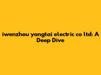Hey guys, let's dive into iwenzhou yongtai electric co ltd! Ever heard of them? They're a player in the electrical game, and we're going to break down everything you need to know. From their products to their potential impact, we'll cover it all. So, buckle up, because we're about to embark on a journey through the world of this company. This isn't just a dry rundown; we'll keep it real and relatable, so you can easily grasp what they're all about. This is to ensure you know everything about this company.