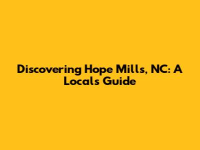 Discovering Hope Mills, NC: A Local's Guide