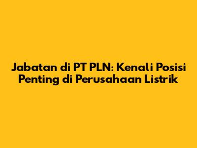Hai, guys! Pernah kepikiran nggak sih, apa aja sih nama jabatan di PT PLN itu? Buat kalian yang penasaran pengen gabung sama perusahaan listrik negara yang satu ini, atau sekadar pengen tahu aja struktur organisasinya kayak gimana, yuk kita kupas tuntas! PT PLN (Persero) itu kan gede banget, guys, dan punya banyak banget divisi serta posisi. Dari yang paling atas sampai yang di lapangan, semuanya punya peran krusial buat memastikan listrik nyala terus di seluruh Indonesia. Jadi, mari kita bedah satu per satu biar nggak penasaran lagi. Ini penting banget buat kalian yang lagi nyari kerja atau mau upgrade karir di dunia BUMN, lho!