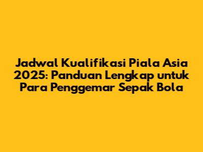 Guys, siap-siap buat merasakan demam sepak bola lagi! Kita semua tahu, Piala Asia adalah ajang bergengsi yang menampilkan tim-tim terbaik dari seluruh benua. Nah, buat kalian yang gak mau ketinggalan aksi seru dari timnas kebanggaan kita, artikel ini adalah panduan lengkap tentang jadwal kualifikasi Piala Asia 2025. Kita bakal bahas semua hal yang perlu kalian tahu, mulai dari format pertandingan, tim-tim yang bertanding, sampai jadwal lengkapnya. Jadi, siapkan diri kalian, catat tanggalnya, dan jangan sampai terlewat satu pun pertandingan seru!