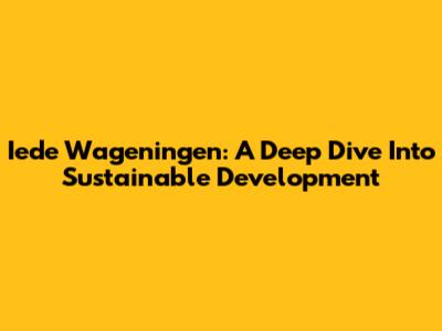 Iede Wageningen: A Deep Dive Into Sustainable Development