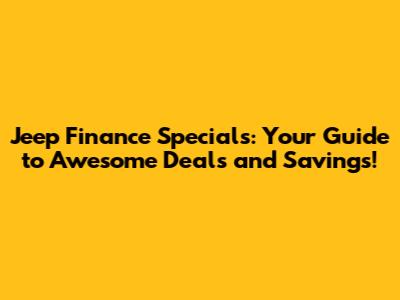 Hey Jeep enthusiasts! Are you dreaming of cruising down the open road in a brand-new Wrangler, Cherokee, or Grand Cherokee? Well, you're in the right place! We're diving deep into the world of Jeep finance specials, uncovering the best deals, and giving you the inside scoop on how to save some serious cash. Whether you're a first-time buyer or a seasoned Jeep aficionado, this guide is packed with tips and tricks to help you navigate the often-confusing world of auto financing. Get ready to explore the latest offers, understand the different types of financing available, and learn how to secure the best possible rates. Let's get started and make your Jeep dreams a reality!