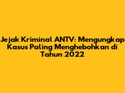 Guys, pernah gak sih kalian lagi santai nonton TV, terus tiba-tiba ada tayangan yang bikin merinding disko? Nah, Jejak Kriminal ANTV itu salah satu program yang sering banget bikin kita kayak gitu. Di tahun 2022 ini, mereka ngeluarin banyak banget liputan kasus-kasus kriminal yang bikin geleng-geleng kepala. Mulai dari kasus yang bikin ngeri sampe yang bikin kita mikir, "Kok bisa ya?". Nah, di artikel ini, kita bakal ngobrolin soal berita kriminal terbaru ANTV 2022 yang paling hits dan bikin penasaran. Siapin kopi kalian, karena kita bakal selami dunia kelam kejahatan yang terungkap lewat layar kaca.