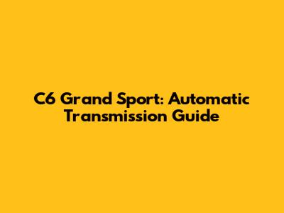 C6 Grand Sport: Automatic Transmission Guide