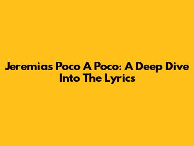 Jeremias Poco A Poco: A Deep Dive Into The Lyrics