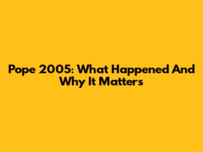 Pope 2005: What Happened And Why It Matters