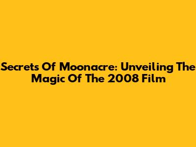 Secrets Of Moonacre: Unveiling The Magic Of The 2008 Film