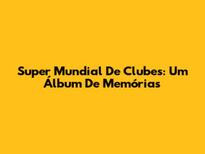 Super Mundial De Clubes: Um Álbum De Memórias