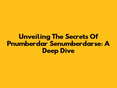 Unveiling The Secrets Of Pnumberdar Senumberdarse: A Deep Dive