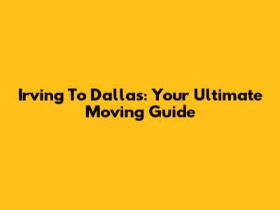 Irving To Dallas: Your Ultimate Moving Guide