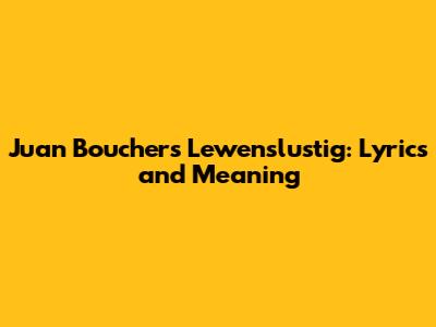 Hey everyone! Ever found yourself vibing to a song and thinking, "Man, I'd love to know what these lyrics actually mean"? Well, today we're diving deep into Juan Boucher's hit, "Lewenslustig." This track is a real gem, and we're going to break down the lyrics, explore the meaning, and maybe even learn a little bit about the man behind the music. Buckle up, guys, because we're about to embark on a lyrical journey!
