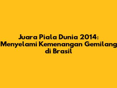 Piala Dunia 2014 di Brasil adalah perhelatan sepak bola yang sangat berkesan. Jerman berhasil meraih gelar juara dunia setelah mengalahkan Argentina di final. Turnamen ini juga diwarnai dengan momen-momen tak terlupakan, kejutan, dan aksi-aksi spektakuler. Piala Dunia 2014 memberikan dampak positif bagi dunia sepak bola, termasuk peningkatan popularitas, pengaruh terhadap perkembangan sepak bola, serta warisan budaya dan ekonomi. Kemenangan Jerman menjadi bukti kerja keras, dedikasi, dan strategi yang tepat. Piala Dunia 2014 akan selalu dikenang sebagai salah satu turnamen sepak bola terbaik sepanjang sejarah.