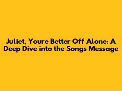 Hey everyone! Have you ever stumbled upon a song that just hits you right in the feels? Well, today, we're diving deep into one of those tracks: "Juliet, Trust Me You'll Be Better Off Alone." This song, with its raw emotion and relatable themes, has resonated with countless listeners. We're going to unpack its meaning, explore its impact, and why it continues to be such a powerful anthem for anyone navigating heartbreak and self-discovery. So, grab your headphones, get comfy, and let's get started!