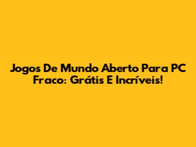 Jogos De Mundo Aberto Para PC Fraco: Grátis E Incríveis!