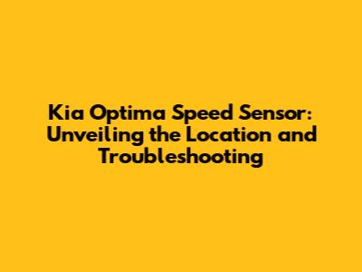 Understanding the Kia Optima Speed Sensor