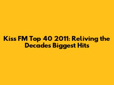 Hey music lovers, are you ready to take a trip down memory lane? Let's rewind to 2011, a year that gifted us with some of the most unforgettable tracks and chart-topping hits! Today, we're diving deep into the Kiss FM Top 40 2011, a playlist packed with the songs that defined the year. Get ready to relive those epic moments, the catchy hooks, and the artists who ruled the airwaves. So, buckle up, grab your headphones, and let's go back to the sounds of 2011! This article will not only give you a rundown of the hits but also a glimpse into the music scene of that era.