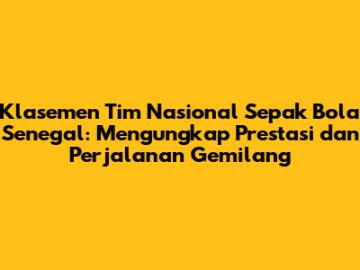 Klasemen Tim Nasional Sepak Bola Senegal mencerminkan perjalanan panjang dan penuh prestasi yang telah ditorehkan oleh tim sepak bola kebanggaan negara Senegal. Dari sejarah awal hingga mencapai puncak kejayaan, timnas Senegal telah berhasil mencatatkan berbagai rekor dan momen bersejarah yang tak terlupakan. Mereka telah membuktikan bahwa mereka mampu bersaing di level tertinggi sepak bola dunia, dan menjadi inspirasi bagi negara-negara Afrika lainnya.