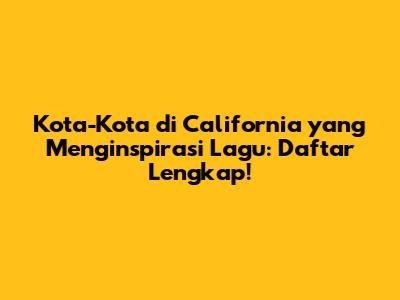 Hey guys! Pernahkah kalian mendengarkan sebuah lagu dan bertanya-tanya, "Kota mana sih yang jadi inspirasi lagu ini?" Nah, buat kalian yang suka banget sama musik, apalagi yang punya latar belakang di California, artikel ini pas banget buat kalian. Kita akan menyelami dunia musik dan menjelajahi kota-kota di California yang menjadi judul lagu. Siapa tahu, setelah baca ini, kalian jadi punya playlist baru yang isinya lagu-lagu keren tentang tempat-tempat yang sudah atau akan kalian kunjungi. Yuk, simak daftar lengkapnya!