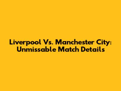 Liverpool Vs. Manchester City: Unmissable Match Details