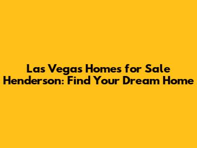 Hey guys! Are you dreaming of owning a home in the vibrant Las Vegas area, specifically in the wonderful city of Henderson? You're in the right place! Finding the perfect Las Vegas homes for sale Henderson can be an exciting but also overwhelming process. But don't worry; we're here to guide you through it all. From understanding the real estate market to exploring different neighborhoods and finally landing your dream home, we've got you covered. Let's dive in and make your home-buying journey a smooth and successful one!