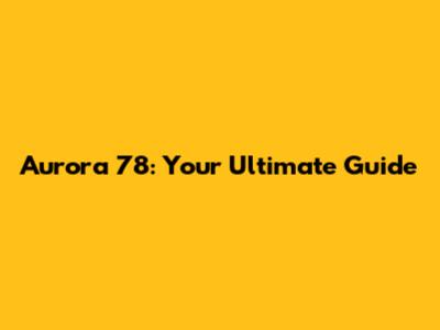 Aurora 78: Your Ultimate Guide