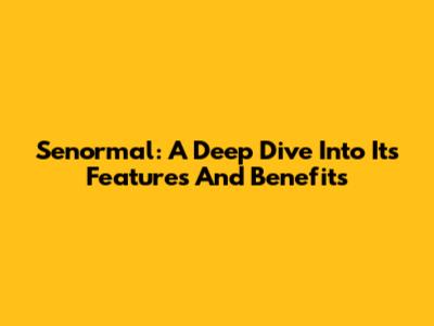 Senormal: A Deep Dive Into Its Features And Benefits