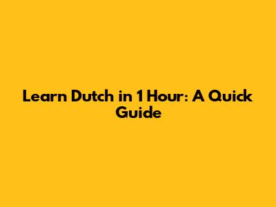 Hey guys! So, you're looking to dive into the Dutch language, and you've got about an hour to spare? Awesome! Maybe you've got a trip coming up, or you're just curious about this cool Germanic language. Whatever your reason, learning Dutch in just one hour might sound a bit ambitious, but don't worry, we're going to make every minute count. This isn't about becoming fluent overnight (that's a marathon, not a sprint!), but it's about giving you a solid foundation, some essential phrases, and a feel for how the language works. Think of this as your express lane to understanding the basics and impressing your Dutch friends or colleagues with a few key phrases. We'll cover pronunciation tips, common greetings, some super useful vocabulary, and basic sentence structures. Ready to get started? Let's jump right in and make this hour productive and fun!