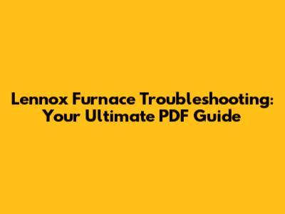 1. Lennox Furnace Troubleshooting PDF