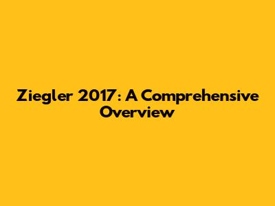 Ziegler 2017: A Comprehensive Overview