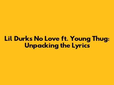 What's up, music lovers! Today, we're diving deep into a track that really hit different: Lil Durk's "No Love" featuring the one and only Young Thug. This song isn't just catchy; it's got layers, man. It talks about loyalty, betrayal, and the hustle in the streets. We're gonna break down the lyrics, figure out what Durk and Thug are really saying, and see why this track has resonated with so many people. So, grab your headphones, maybe a drink, and let's get into it!