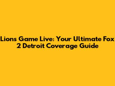 What's up, football fanatics! If you're here, you're probably buzzing with excitement, looking for the absolute best way to catch the Detroit Lions game live on Fox 2 Detroit. You've come to the right place, guys! We're diving deep into everything you need to know to ensure you don't miss a single touchdown, interception, or game-winning field goal. Whether you're a seasoned Lions supporter or new to the roar of the crowd, this guide is your one-stop shop for all things Lions game day on Fox 2 Detroit. We'll cover how to tune in, what to expect, and maybe even share a few tips to make your game day experience even better. So grab your favorite jersey, settle into your comfiest spot, and let's get this game day party started!
