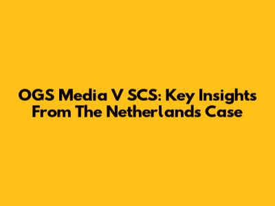 OGS Media V SCS: Key Insights From The Netherlands Case