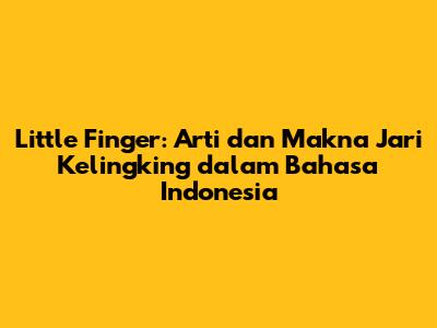 Little finger, atau yang lebih dikenal dengan sebutan jari kelingking, adalah jari terkecil yang terletak di ujung sisi tangan kita. Dalam bahasa Indonesia, istilah ini merujuk langsung pada jari yang sama. Namun, tahukah kamu bahwa jari kelingking tidak hanya sekadar jari terkecil? Jari ini memiliki berbagai makna dan peran penting dalam budaya, bahasa, dan bahkan anatomi tubuh kita. Dalam artikel ini, kita akan membahas secara mendalam tentang arti little finger dalam bahasa Indonesia, serta berbagai aspek menarik yang terkait dengannya.
