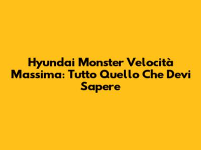 Hyundai Monster Velocità Massima: Tutto Quello Che Devi Sapere