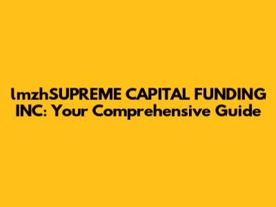 Hey guys! Ever felt like navigating the world of capital funding is like trying to solve a Rubik's Cube blindfolded? You're not alone! lmzhSUPREME CAPITAL FUNDING INC is a name that might pop up when you're diving into funding options. So, let's break down what this could mean for you and how you can make the best decisions for your business or project. This guide will cover everything you need to know, from understanding the basics of capital funding to exploring different avenues and making informed choices.