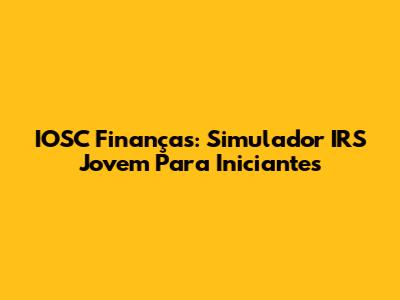 IOSC Finanças: Simulador IRS Jovem Para Iniciantes
