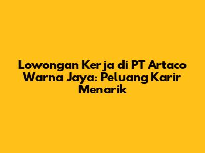 Lowongan kerja di PT Artaco Warna Jaya menjadi topik hangat bagi para pencari kerja di Indonesia. Kalian semua pasti penasaran, kan, apa saja posisi yang tersedia, bagaimana persyaratannya, dan apa saja keuntungan yang bisa didapatkan? Nah, artikel ini akan membahas tuntas seputar lowongan kerja di PT Artaco Warna Jaya, mulai dari informasi posisi yang tersedia, persyaratan yang harus dipenuhi, gaji dan fasilitas yang ditawarkan, hingga tips melamar kerja yang efektif. Jadi, simak terus ya, guys! Jangan sampai ketinggalan informasi pentingnya, karena siapa tahu, ini adalah kesempatan emas untuk kalian semua.