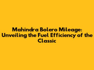 Mahindra Bolero Old Model Mileage: A General Overview