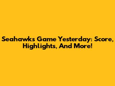 Seahawks Game Yesterday: Score, Highlights, And More!