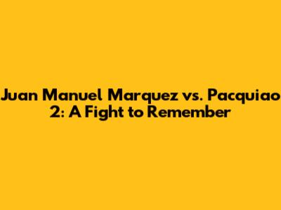 Marquez Vs Pacquiao 2: A Fight To Remember