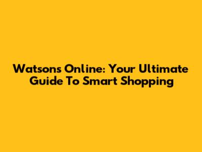 Watsons Online: Your Ultimate Guide To Smart Shopping