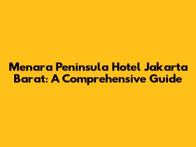 Hey guys! Planning a trip to Jakarta Barat and looking for a sweet place to stay? You've probably stumbled upon the Menara Peninsula Hotel Jakarta Barat, and for good reason! This hotel is a well-known option for both business and leisure travelers. I'm here to give you the lowdown on everything you need to know about this spot, from its location and amenities to what people are saying about it. Let's dive in, shall we?