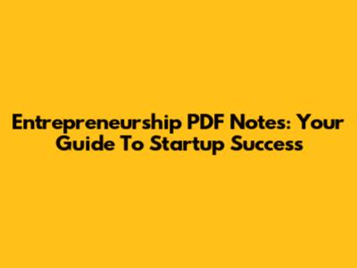 Entrepreneurship PDF Notes: Your Guide To Startup Success