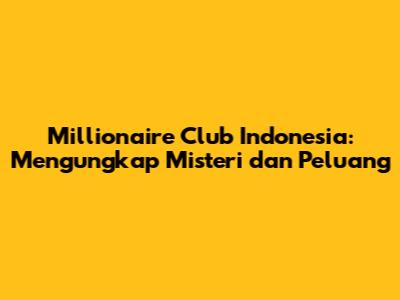 Apa Itu Millionaire Club Indonesia? Definisi dan Tujuan Utama