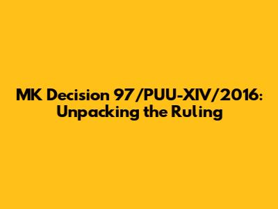 Hey guys! Let's dive into something pretty important – MK Decision 97/PUU-XIV/2016. If you're not already familiar, this is a ruling from the Indonesian Constitutional Court (Mahkamah Konstitusi, or MK) that's had some serious impact. We're going to break it down, make it easy to understand, and see why it still matters. So, buckle up! This case is super interesting because it highlights how the Court handles complex legal issues, specifically regarding the rights of individuals and the role of the state. Understanding the reasoning behind this decision is crucial for anyone interested in Indonesian law, politics, and human rights. We'll explore the main points, the arguments presented, and the lasting effects this ruling has had on various aspects of society.