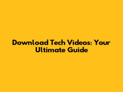 Download Tech Videos: Your Ultimate Guide